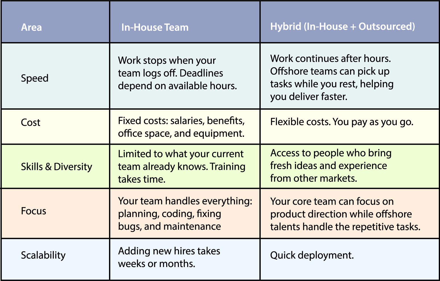 Code reviewing keeps your stack from turning into spaghetti. It doesn’t matter who wrote the code, internal or offshore, because it all flows through the same gate.
