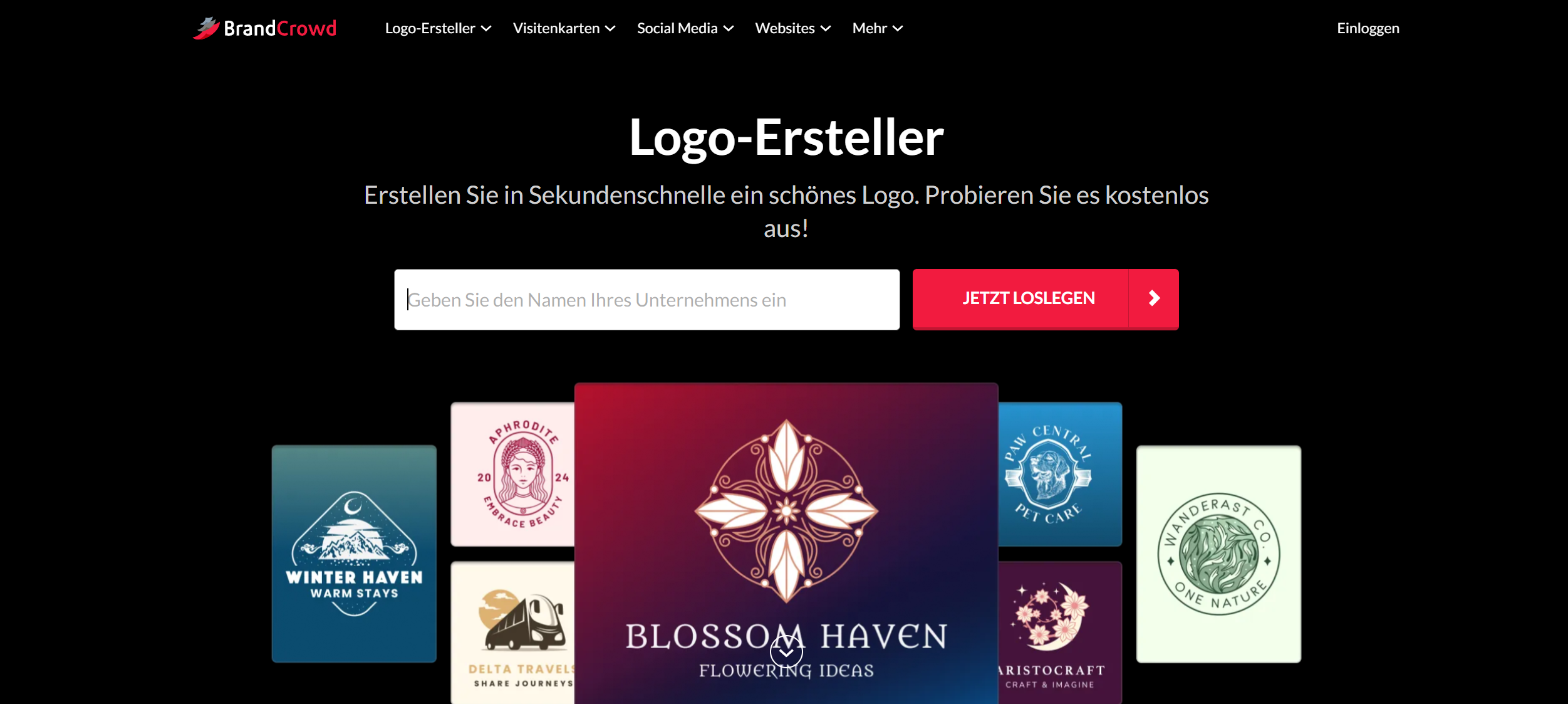 BrandCrowd ist der führende Logo-Generator mit einer Trustpilot-Bewertung von 4,8 Sternen aus über 9.000 Rezensionen. Besonders hervorzuheben ist der komplett kostenlose Tarif, der Ihnen vollen Zugriff auf die Gestaltung und den Download professioneller Branding-Elemente bietet – völlig kostenlos. Erstellen Sie noch heute Ihre gesamte Markenidentität – ganz ohne Kreditkarte.