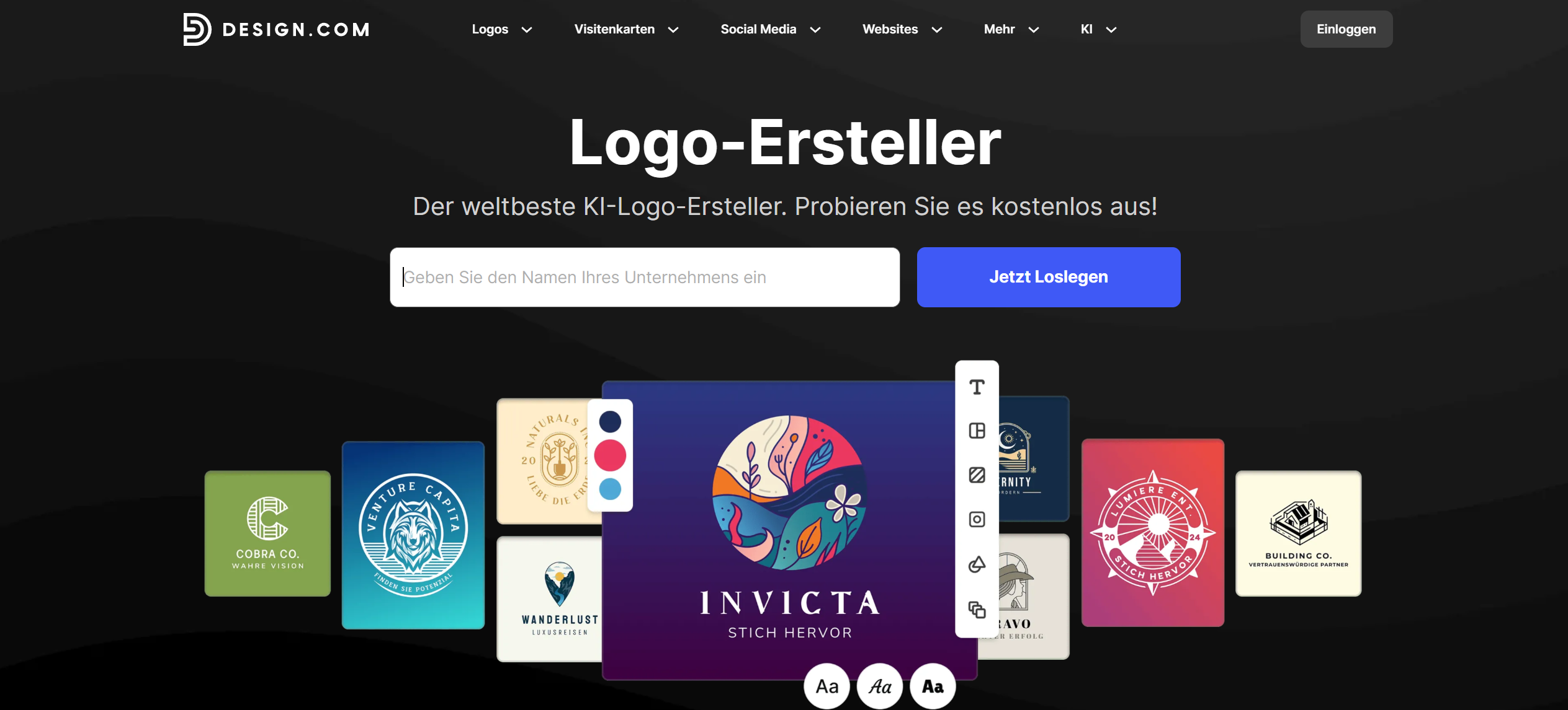 - Umfassende KI-Suite : KI-Logo-Generator, Website-Baukasten, Visitenkarten, Flyer, Poster und Präsentationen.